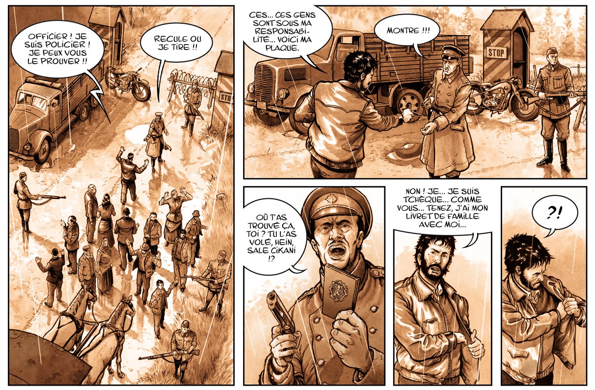 Encore un petit extrait; une scène réalisée il y a quelques mois, située au milieu de l'histoire... J'ai du mal à choisir des images récentes, par peur de dévoiler des clés du récit mis en place. Il me reste moins de 20 pages à exécuter sur les 72 qui composeront le livre. Je pense que j'en aurai fini d'ici la fin de l'année, pour une parution en 2012... Je vous tiens au courant dès que je vois le bout du tunnel et dès que les choses se précisent. Merci à tous ceux qui me témoignent soutien et intérêt. :)